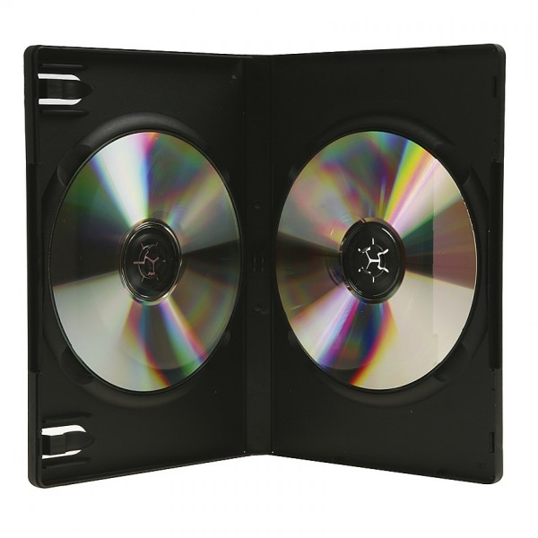 Caixa o estoig per a 2 DVD amb solapa transparent per poder posar una caràtula de paper.