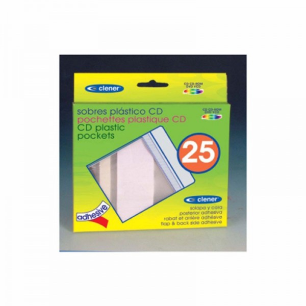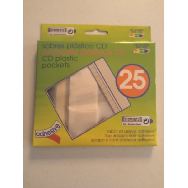 25 FUNDAS 1 CD PLASTICO ADHESIVAS
