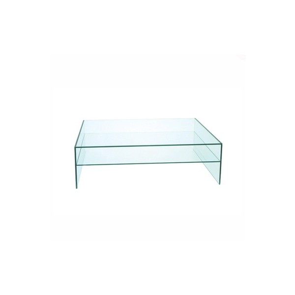Table basse rectangulaire faite de plusieurs couches de tablette en verre trempé solide.