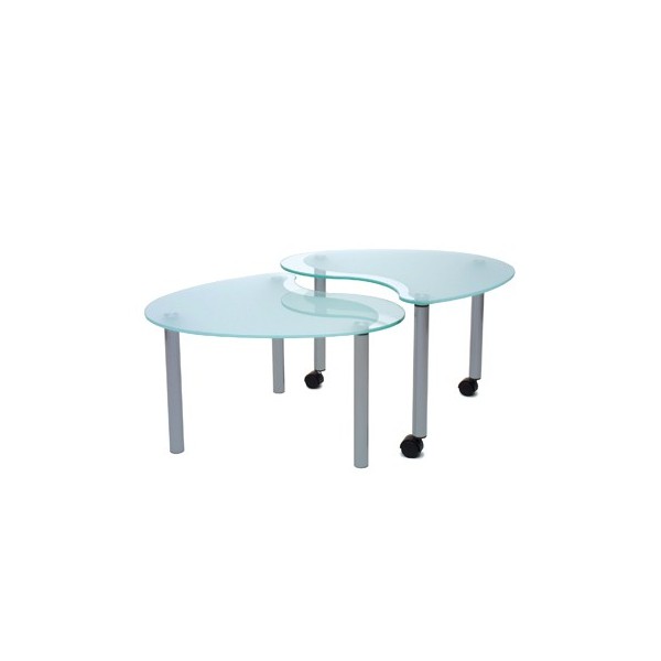 Table avec base en aluminium, une partie fixe et une roue pour faire défiler.