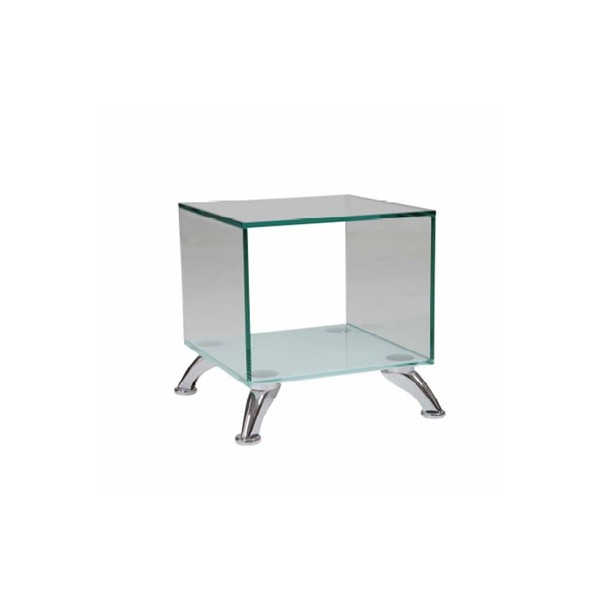 Cube en verre trempé de 4 pieds en gris argent métallisé chromé.
