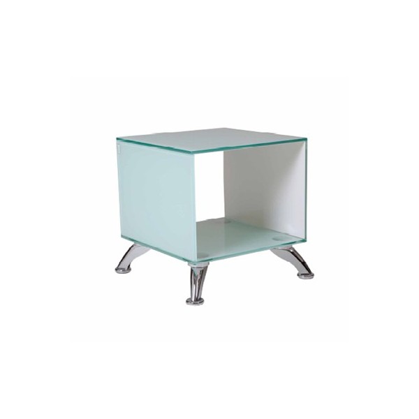Cube en verre trempé de 4 pieds en gris argent métallisé chromé.