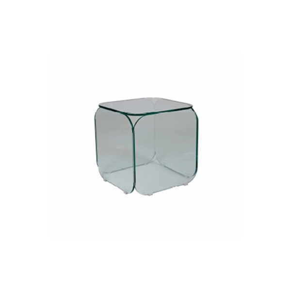 En forme de cube de table, design moderne en verre trempé avec des extrémités arrondies.